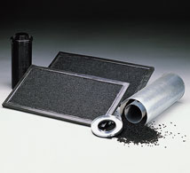 Die hierbei verwendete zylindrische Stäbchenkohle zeichnet sich durch hohe Abriebhärte und geringe Luftwiderstände aus. Neben Standardkohlen zur Adsorption von Kohlenwasserstoffen steht ein umfangreiches Programm von imprägnierten Spezialkohlen mit unterschiedlicher Korngröße und Formung zur Verfügung.